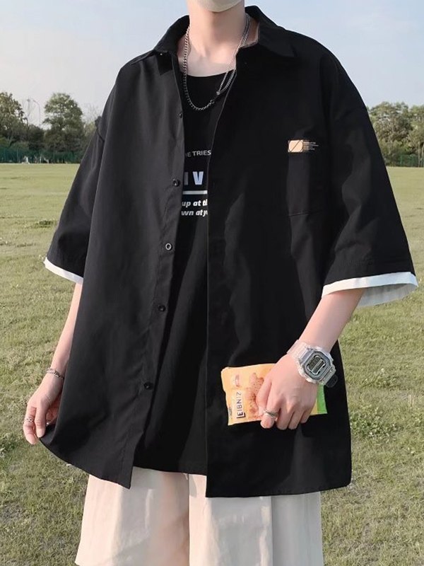Kurzärmliges Patchwork-Hemd für Herren mit Knöpfen
