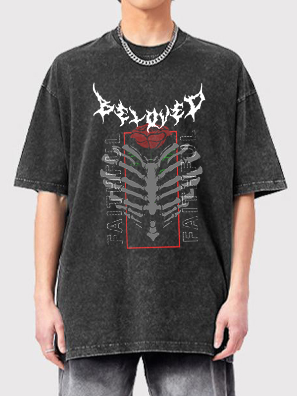Übergroßes, kurzärmliges T-Shirt mit Totenkopf-Print für Herren