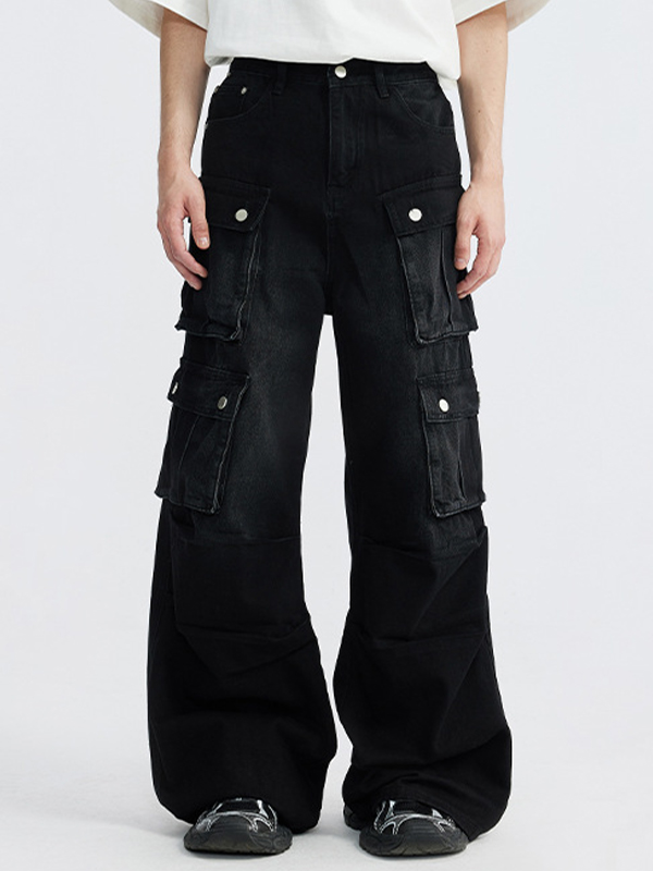 Cargo-Jeans im Retro-Look mit mehreren Taschen und Used-Look