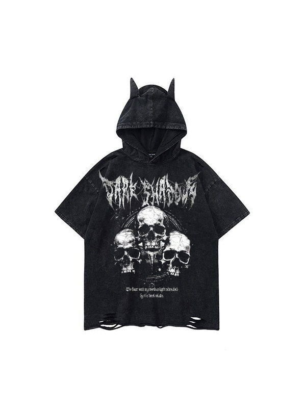 Kleiner Teufelsschädel Dunkler Stil Druck Kurze Ärmel