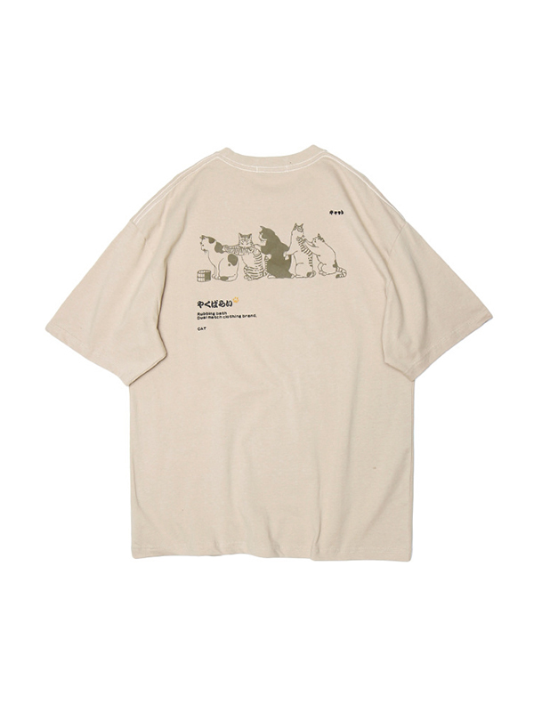 Übergroßes Kurzarm-T-Shirt mit Katzenmuster
