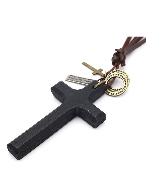 Halskette aus Leder mit Kreuzanhänger aus Holz