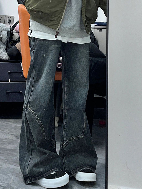 Lockere Jeans im gewaschenen American Retro-Blitzmuster