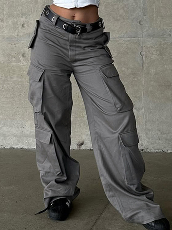 Lässige Streetwear-Arbeitshose mit hoher Taille, mehreren Taschen, Kordelzug, lockerer Passform und geradem Bein