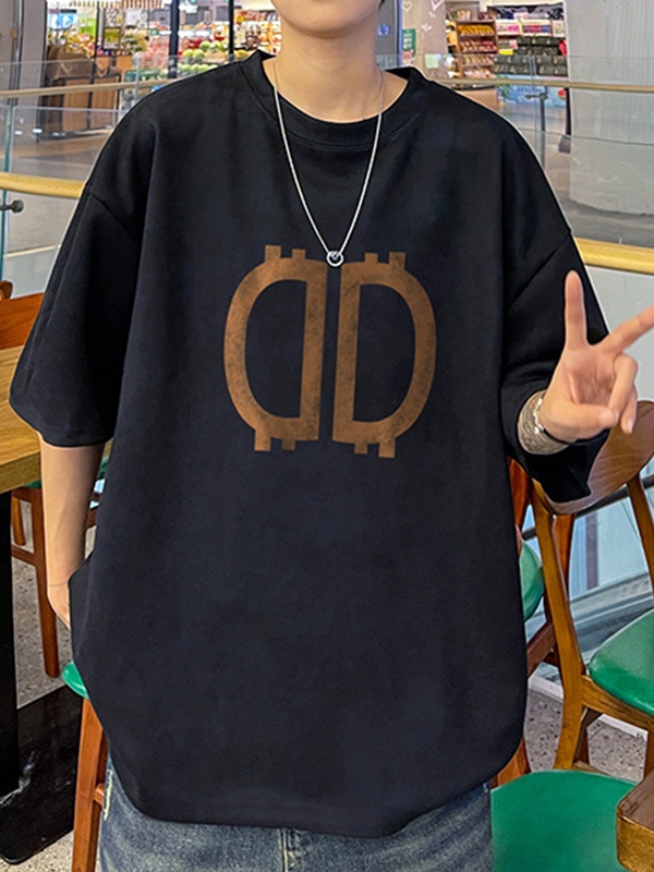 Übergroßes Kurzarm-T-Shirt aus Wildleder mit Buchstaben für Herren