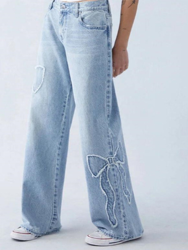 Gerade Jeans mit Schmetterlingsstickerei