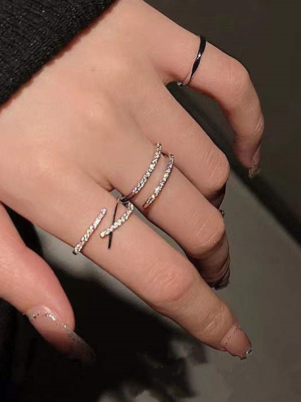 3-teiliges Strass-Manschettenring-Set