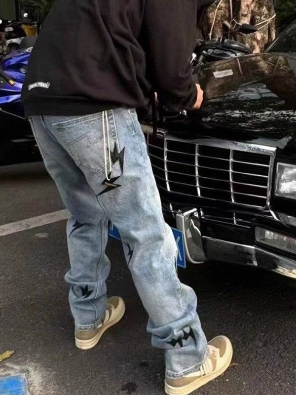 Lockere Jeans mit Patch-Leder-Lightning für Herren
