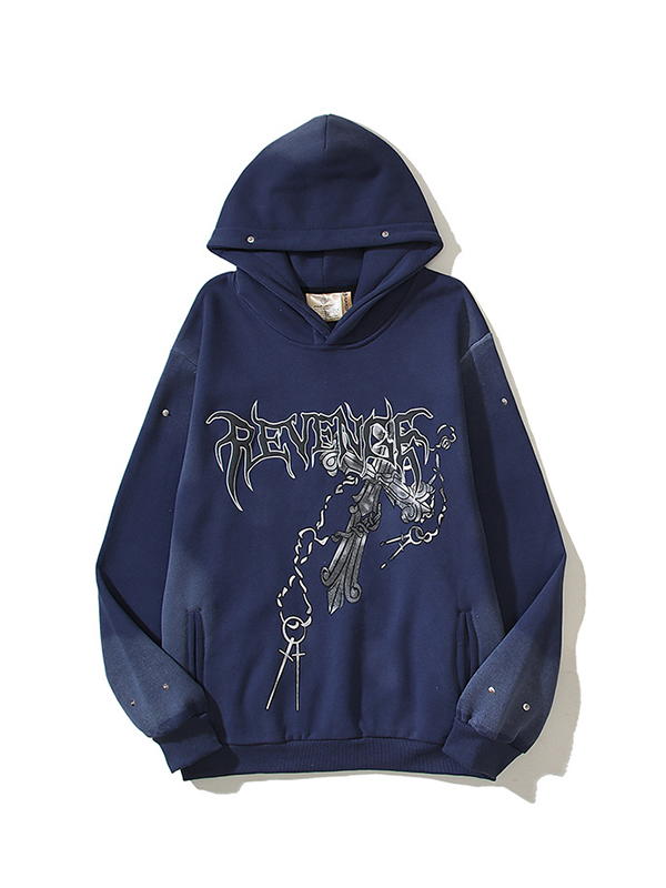 Übergroßer Langarm-Kapuzenpullover mit „Cross Plus“-Samt-Print für Herren