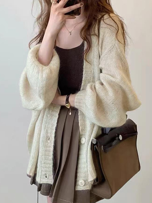 Einfarbiger Baggy-Cardigan aus Mohair mit Laternenärmeln
