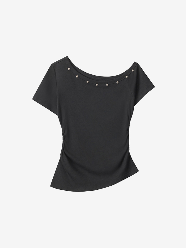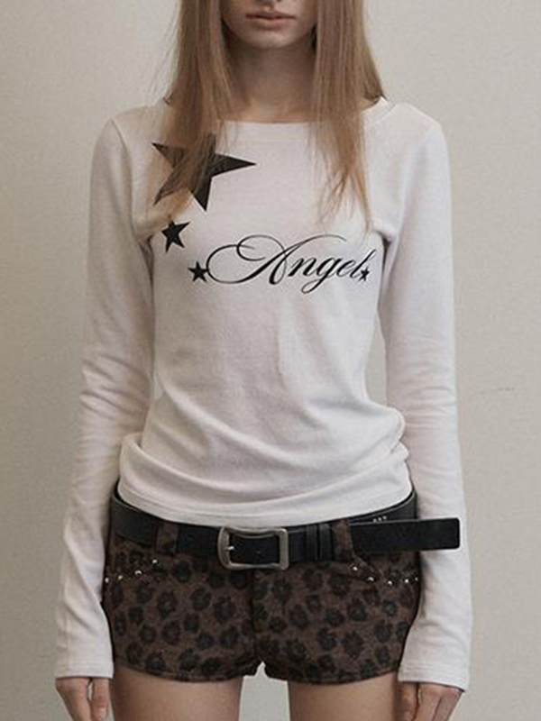Langarm-T-Shirt mit One-Shoulder-Lettering