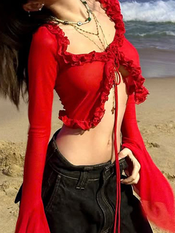 Langärmliges T-Shirt mit ausgestellten Ärmeln und Schnürung