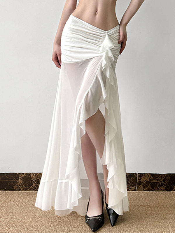 Maxirock mit Rüschen und unregelmäßigem Schlitz