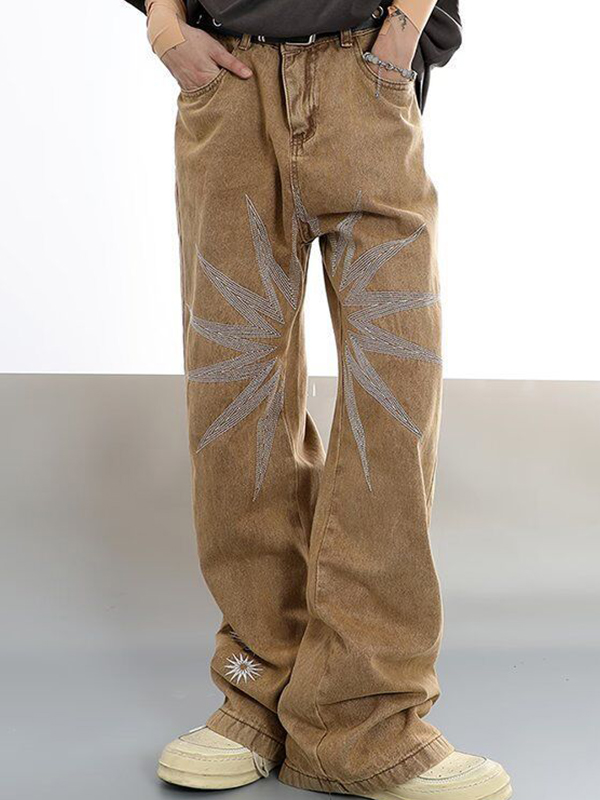 Lockere Vintage-Jeans für Herren mit Stickerei