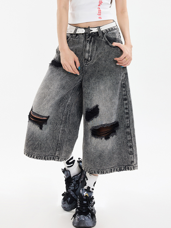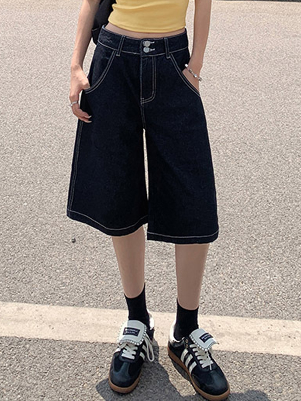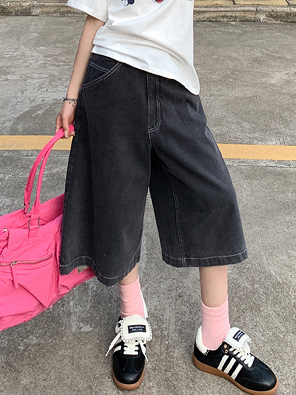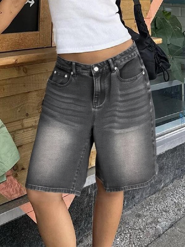 Vintage Lockere Jeansshorts mit weitem Bein