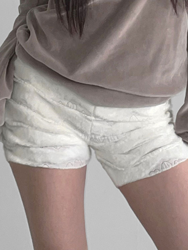 Shorts mit Pelz-Patchwork-Spitze