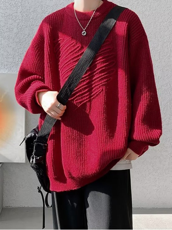 Herrenpullover mit dreidimensionalem Herzdekor und Rundhalsausschnitt