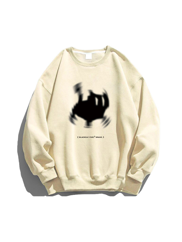 Lockeres T-Shirt mit dunklem Katzen-Print und perforiertem Rundhalsausschnitt