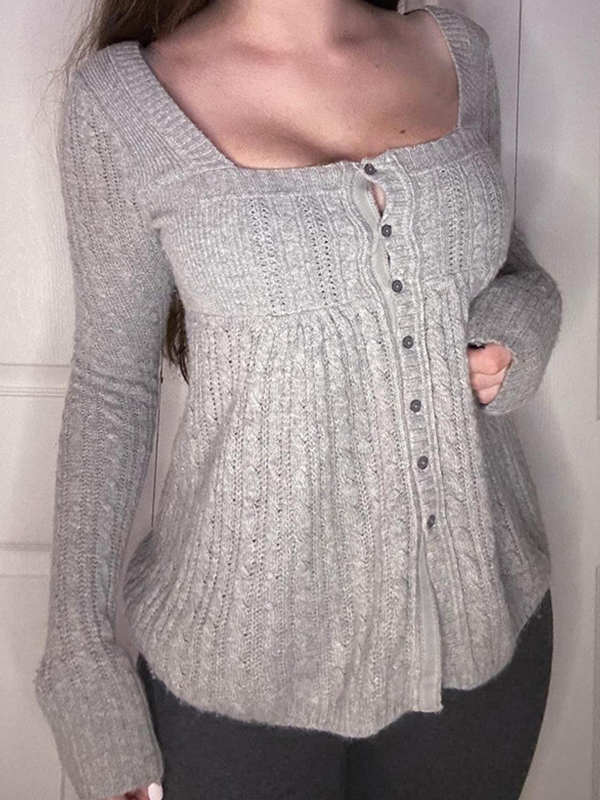 Pullover mit quadratischem Ausschnitt, langen Ärmeln, hoher Taille, Minikleider
