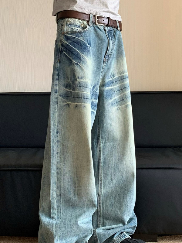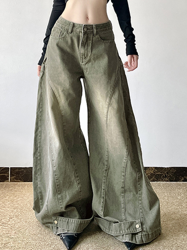 Ausgewaschene Schlagjeans mit niedriger Taille
