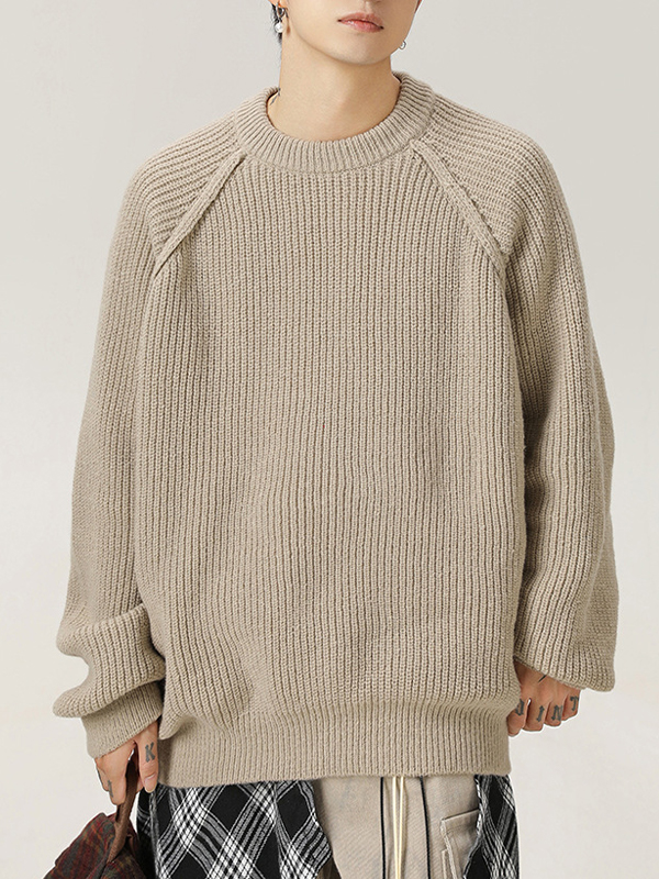 Pullover mit dreidimensionalem Schulterlinien-Design und Rundhalsausschnitt