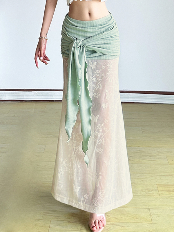 Maxirock aus Netzstoff im Vintage-Stil mit Blumenmuster
