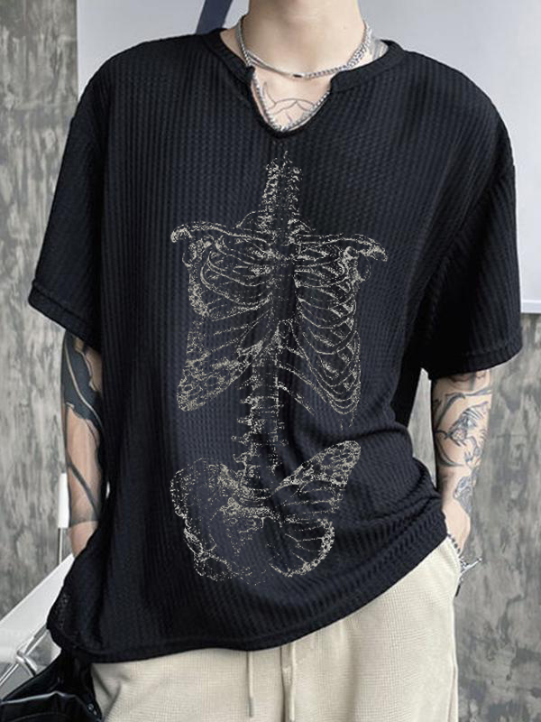 Kurzärmliges T-Shirt mit Totenkopf-Print am Hals für Herren