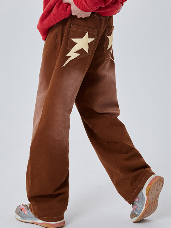 Lose Jeans für Herren im Vintage-Stil mit zerrissenen Aufnähern in Kontrastfarbe