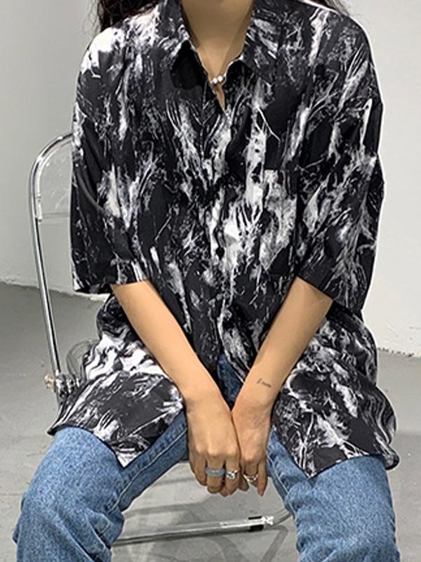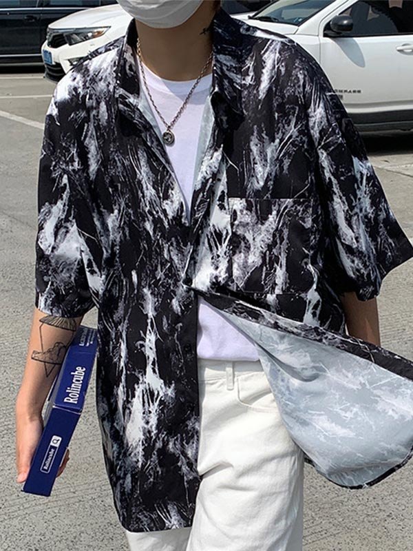 Stil: Lässig/Street/Vintage Farbe: Weiß, Schwarz Material: Polyester Passform: Normal Ausschnitt: Umlegekragen Ärmellänge: Kurzarm