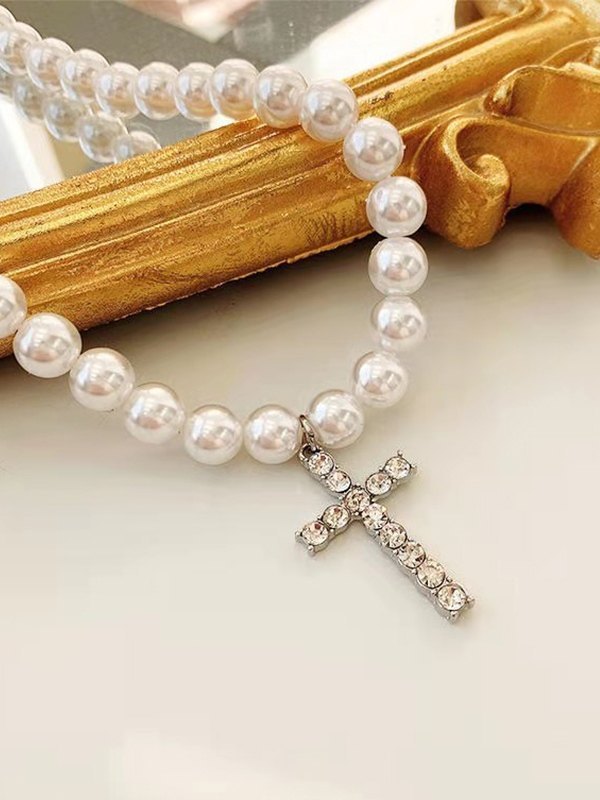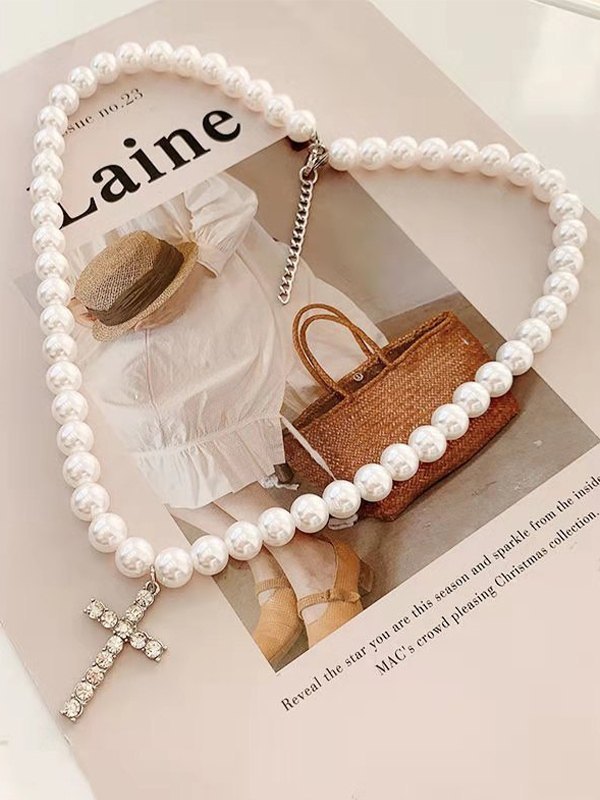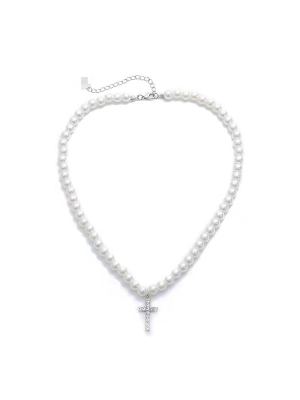Schreibe die erste Bewertung für „Herren Strass Kreuz Anhänger Faux Perlenkette“