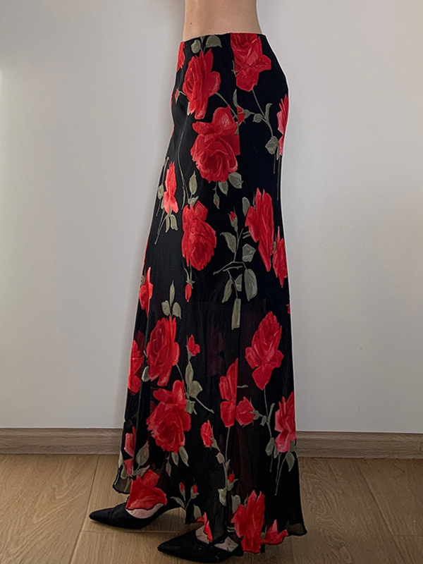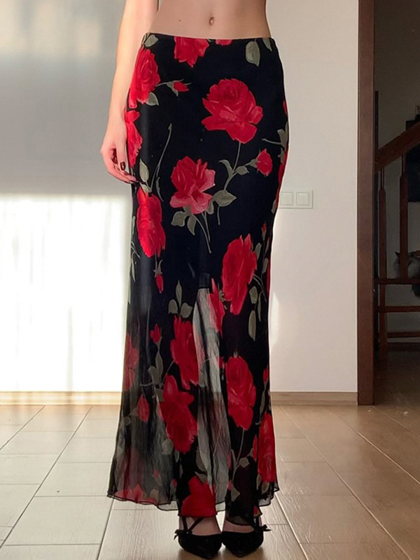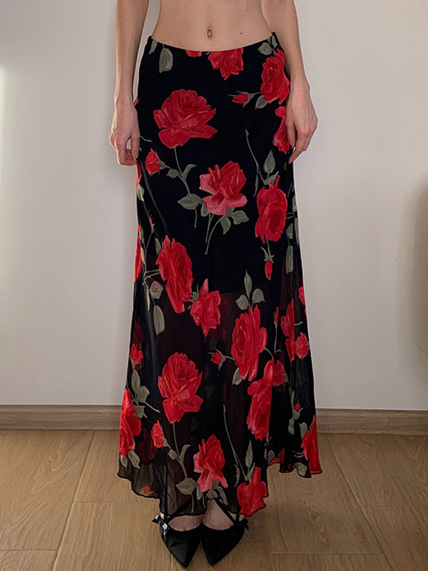 Maxirock aus Netzstoff im Vintage-Stil mit Blumenmuster