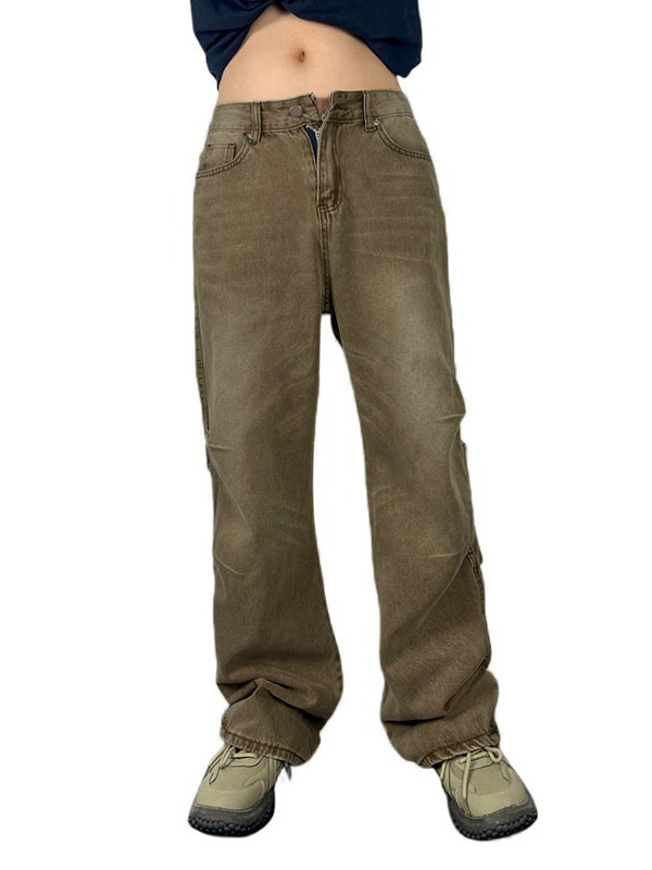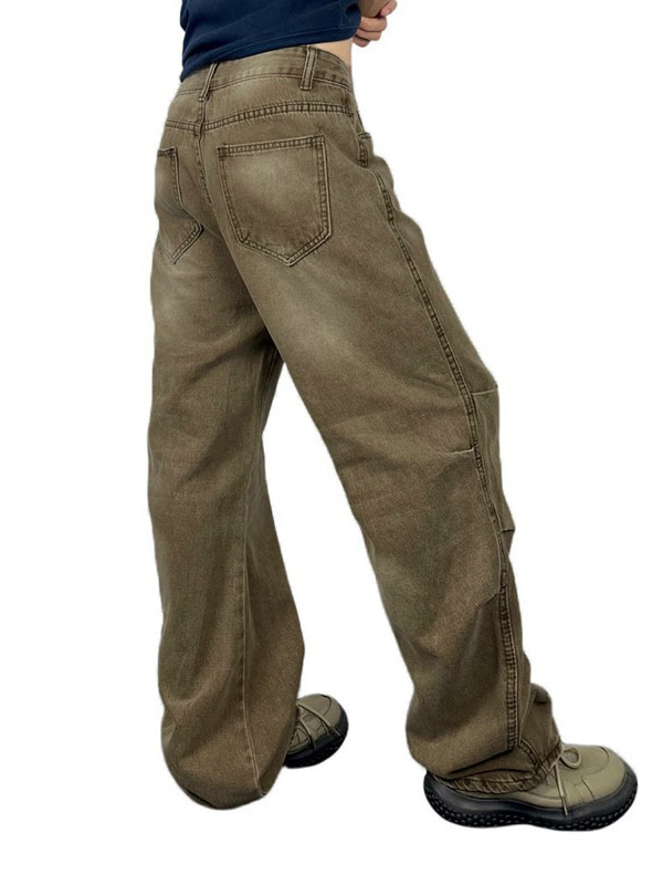 Vintage geraffte Low-Rise-Boyfriend-Jeans