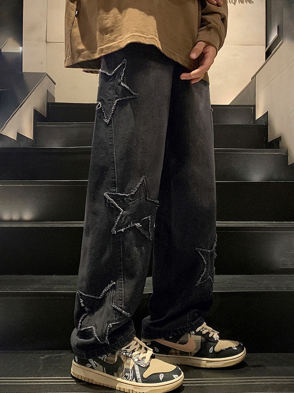 Herren Jeans mit lockerem Schnitt und geradem Bein im Star Patchwork-Stil