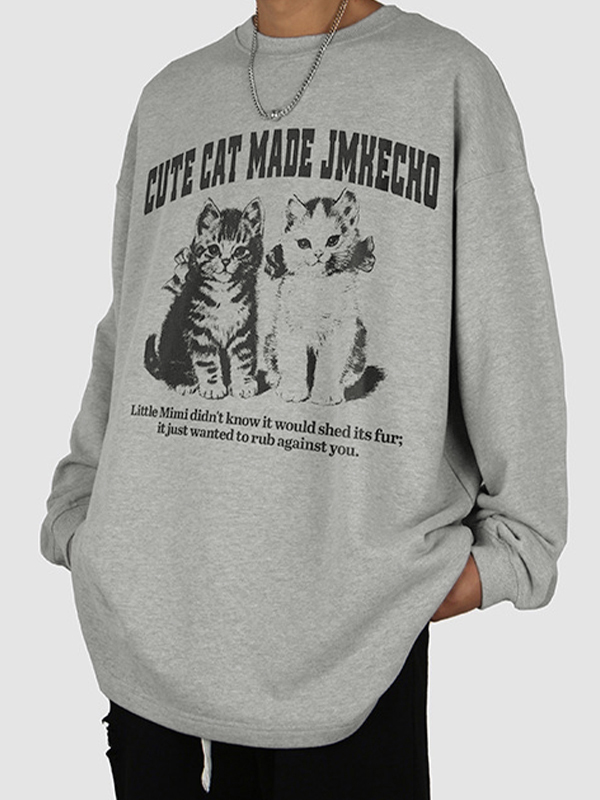 Herren-Langarm-T-Shirt mit Vintage-Kitten-Print