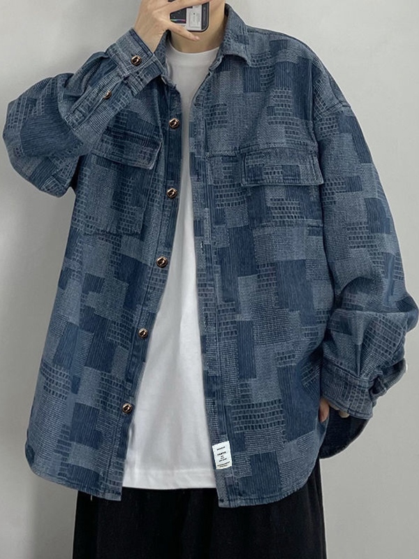 Einfaches Cord-Langarmhemd mit Taschen für Herren
