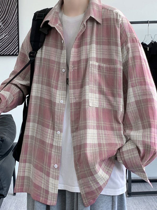 Herrenbluse im Vintage-Stil mit Karomuster und langen Ärmeln