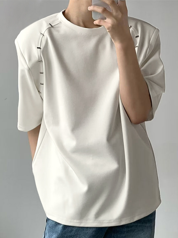 Herren Solid Splice Shoulder Pad Kurzarm-T-Shirt
