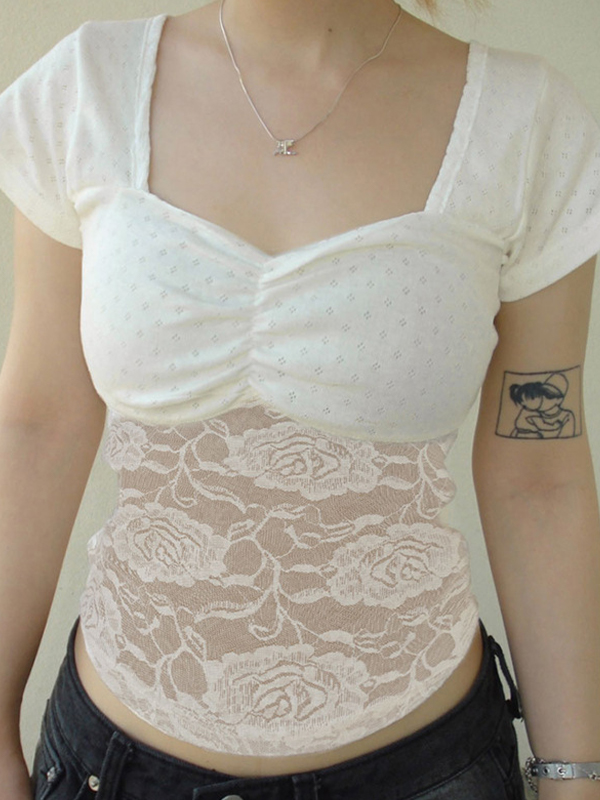 Kurzarm-T-Shirt mit Spitze