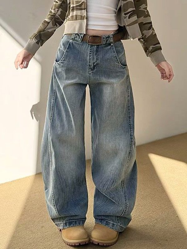 Lockere Boyfriendjeans mit weitem Bein und gebogenem Messer